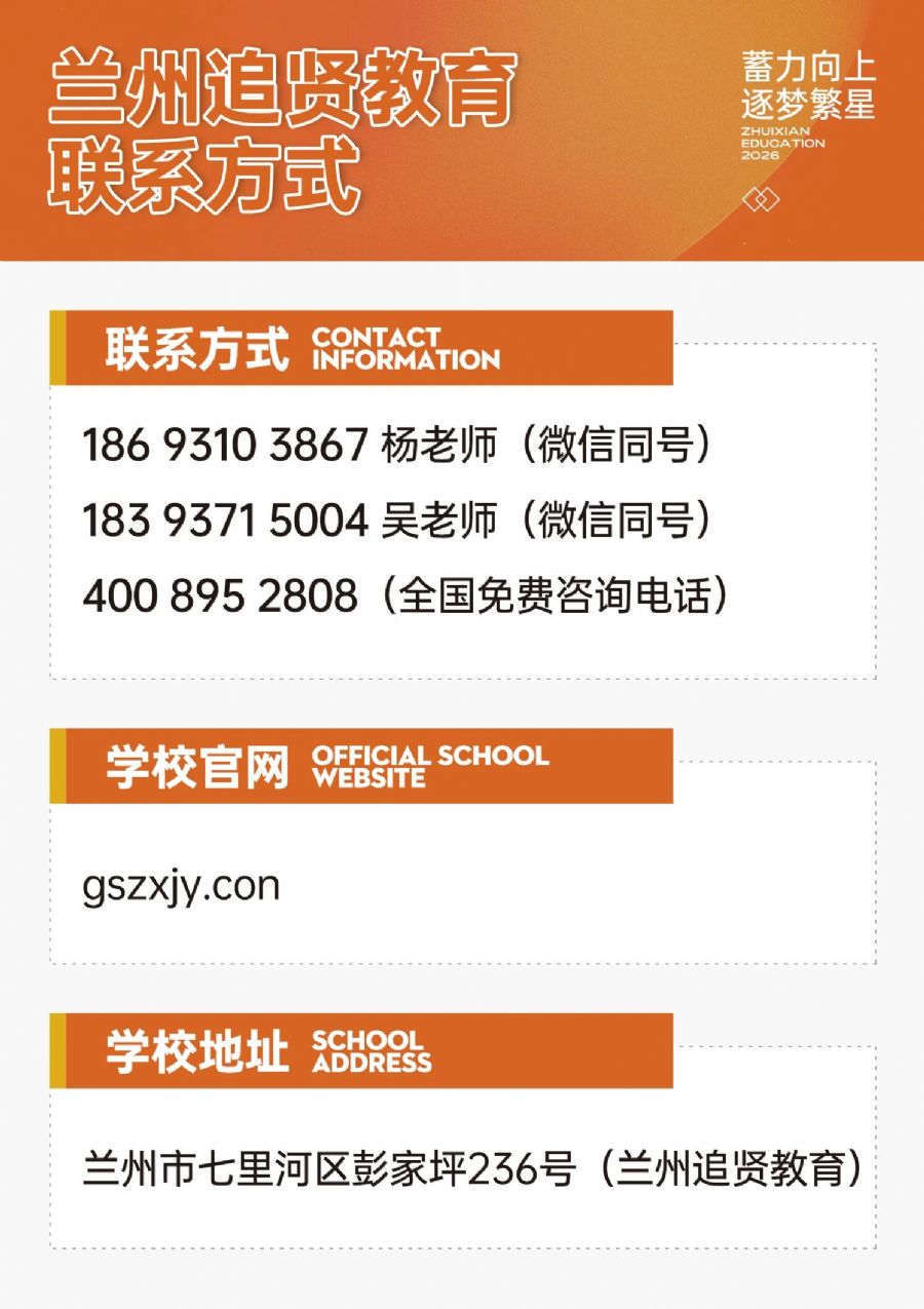 【蓄力向上·逐梦繁星】兰州追贤教育2026届艺考文化课招生简章