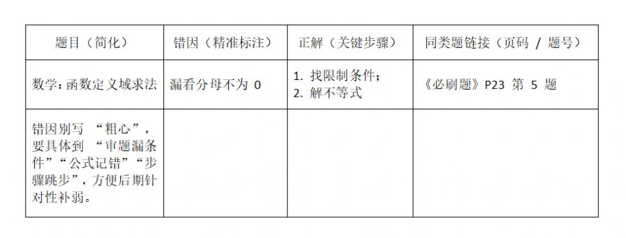 错题本只抄题目和答案,不标错因,下次遇到同类题还是错。