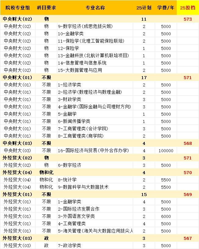 首先是文科方面的“两财一贸”——上海财大、中央财大和外经贸大。在行业内具有非常深厚的校友资源,虽说近些年金融行业走低,但这三所学校的分数一直都相对坚挺: